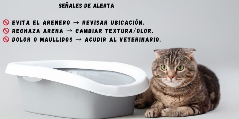 - Si el gatito intenta usar el arenero pero muestra dolor, maúlla o evita entrar, puede ser un signo de enfermedad.