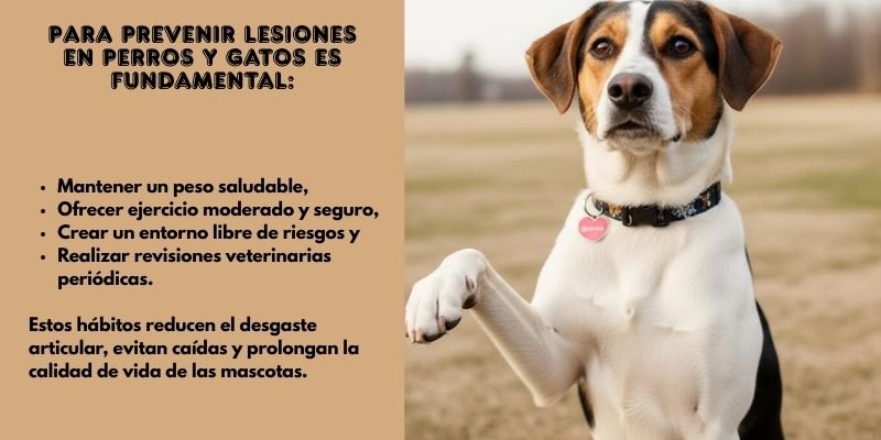 👉 En conclusión, el enfoque integral de la prevención articula todos los aspectos del cuidado de perros y gatos: alimentación, ejercicio, entorno, emociones y salud veterinaria. Solo al combinar estos pilares se logra una protección completa de sus articulaciones y movilidad.