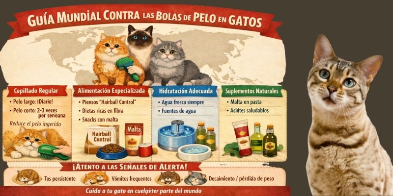 - Todos los gatos del mundo, sin importar raza, edad o país, pueden desarrollar bolas de pelo.