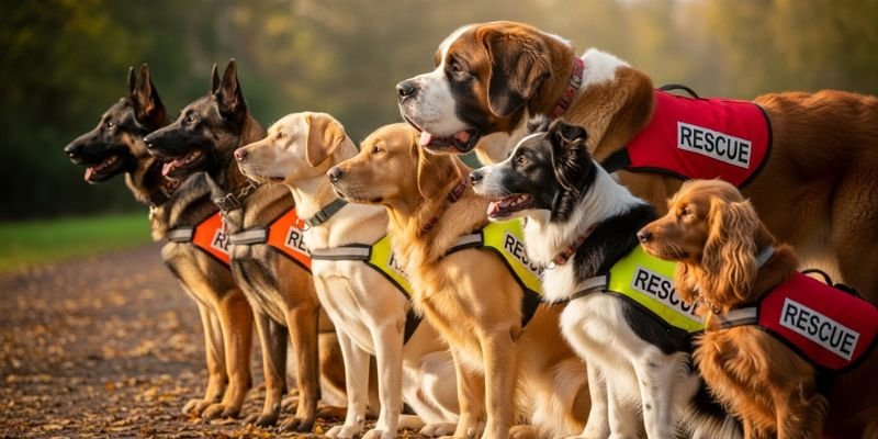 ✨ En resumen: los Pastores (Alemán y Malinois) lideran por su versatilidad y energía, seguidos por los Retrievers por su olfato y temperamento. El San Bernardo queda como ícono histórico, mientras que razas como el Border Collie y el Springer Spaniel aportan agilidad y especialización.