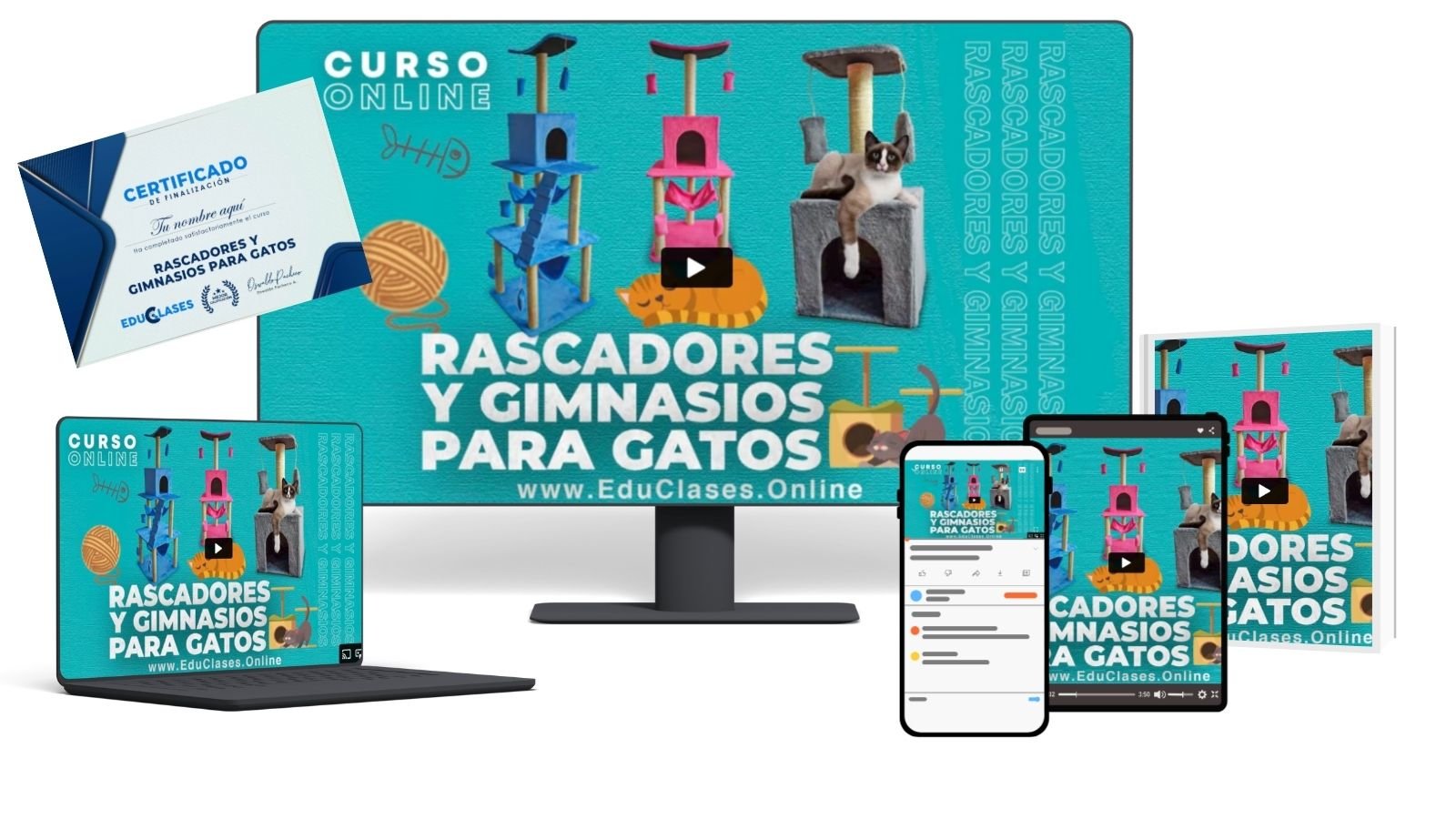 En el Curso RASCADORES Y GIMNASIOS PARA GATOS. Si amas a los gatos y te apasiona construir cosas con tus propias manos, este curso es para ti. Aprenderás a crear espacios que no solo serán funcionales y hermosos, sino también llenos de propósito: mejorar la vida de los felinos mientras abres las puertas a un nuevo proyecto personal o profesional