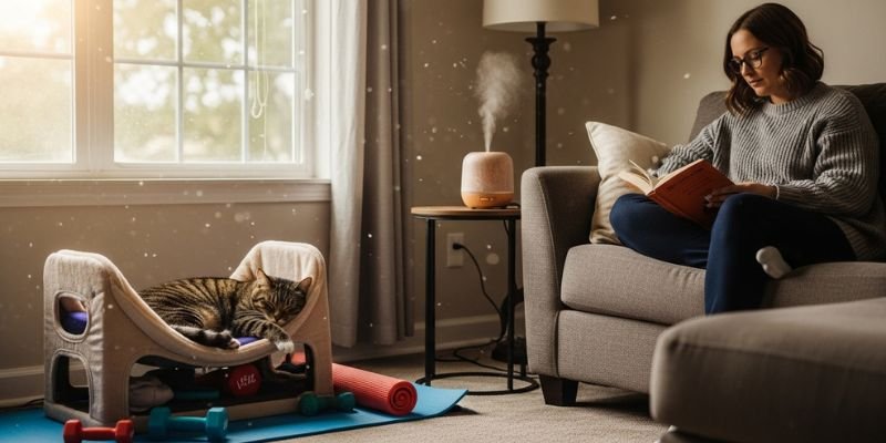 - Aromaterapia pasiva y segura: solo productos formulados para gatos; nunca aceites esenciales comunes.