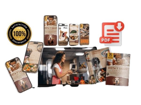 Con el EBOOK de Dieta y Salud Canina 75 Recetas + BONOS “Abre las puertas a un mundo de exquisitos sabores y recetas saludables que no solo deleitarán a tu mascota, sino que también mejorarán su bienestar general. Cada receta es un paso hacia una vida más sana y feliz para tu fiel compañero.