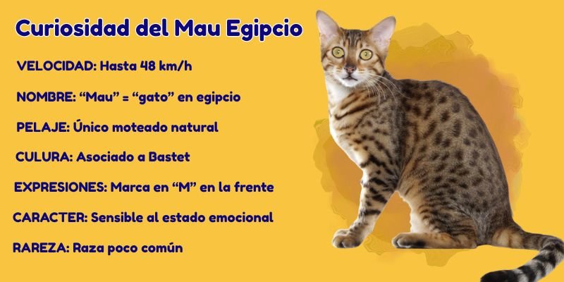 El Mau Egipcio no solo es una raza antigua y elegante, también está rodeado de datos curiosos que lo hacen único en el mundo felino. Aquí tienes los más destacados: