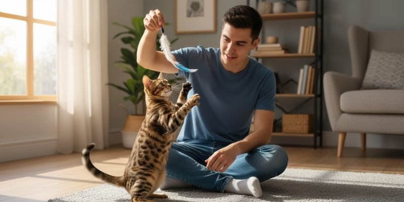 - Enriquecimiento ambiental: Rascadores, estantes, juguetes interactivos y escondites.