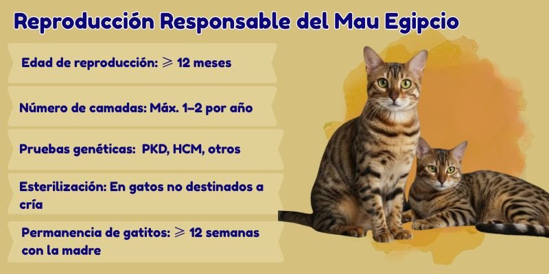 La vida reproductiva responsable del Mau Egipcio implica planificación, ética y cuidado veterinario constante. Criar gatos de esta raza no es solo un acto biológico, sino un compromiso con la salud del linaje y el bienestar animal.