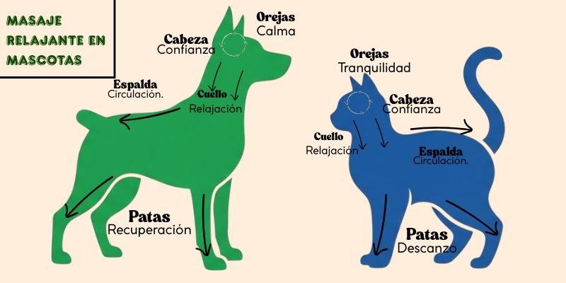 Esta comparación es perfecta para un material educativo porque conecta con la experiencia humana y facilita que el lector entienda cómo el masaje impacta en su mascota.