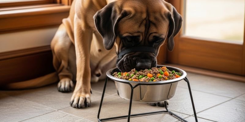 El Mastiff, por su gran tamaño, rápido crecimiento y alta masa corporal, necesita una alimentación equilibrada, de alta calidad y bien controlada en calorías. Requiere un buen aporte de proteínas de calidad para mantener su musculatura, grasas saludables para energía y piel sana, y un balance adecuado de calcio y fósforo para proteger huesos y articulaciones, especialmente durante la etapa de crecimiento. Un exceso de energía o minerales puede favorecer problemas articulares, por lo que la nutrición debe ser precisa y adaptada a su edad y condición corporal.
