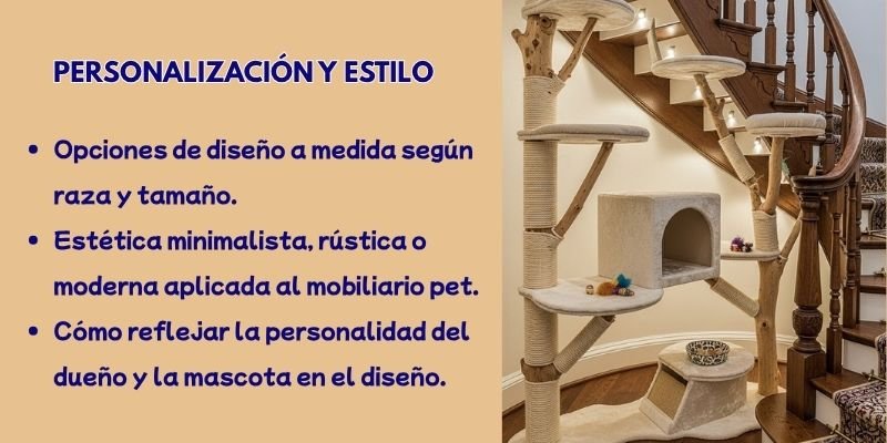El mobiliario pet ya no es un accesorio aislado, sino parte del diseño interior. La tendencia actual busca que torres, rascadores y refugios se integren de forma armónica con el estilo del hogar que se camuflan en el entorno y un estilo narrativo que refleja la personalidad del dueño y su mascota, Por Ejemplo: